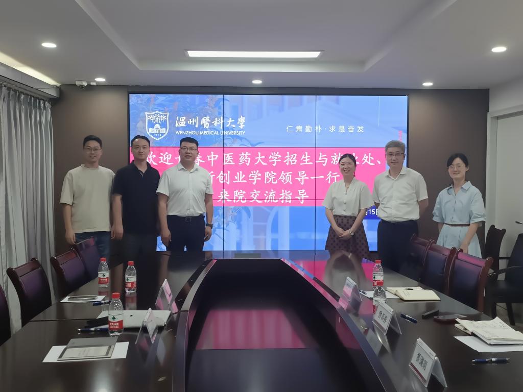6月15日上午,长春中医药大学招生与就业处处长、创新创业学院执行院长于澎带队一行2人,前来哔咔漫画 交流指导。在同心楼二楼会议室举行交流会议,会议由哔咔漫画 副院长曾春燕主持,国际教育学院院长金利泰出席会议参与交流。