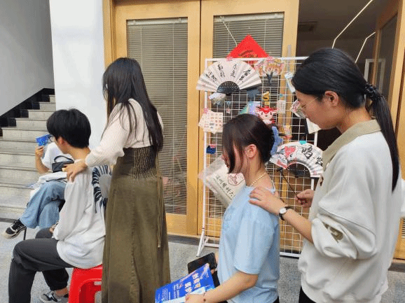 除了创新创业成果展,考生和家长还通过与各个学院创新创业项目的互动体验集章赢取温医文创,各学院互动别出心裁,现场一片欢声笑语:在药学院的展位上,考生们排队参与套圈游戏赢取自制药皂;检验医学院(生命科学学院)展位设置了现场血型测试,简单的血型测试让参与者感受着医学的独特魅力;第一临床医学院(信息与工程学院)特色项目“生命之光”则通过对器官捐献的科普介绍让考生们深受震撼,更有考生现场签署了器官捐献意向书;考生和家长在中医药学院展位体验着梅花针按摩服务,亲身体会中医与现代科技的结合;活动现场还有口腔医学院的牙齿健康科普、康复医学院的VR互动体验、眼视光学院(生物医学工程学院)的免费眼镜护理服务……丰富多彩的游园活动让到来的每位考生和家长们在紧张的考试中得到了身心的放松。