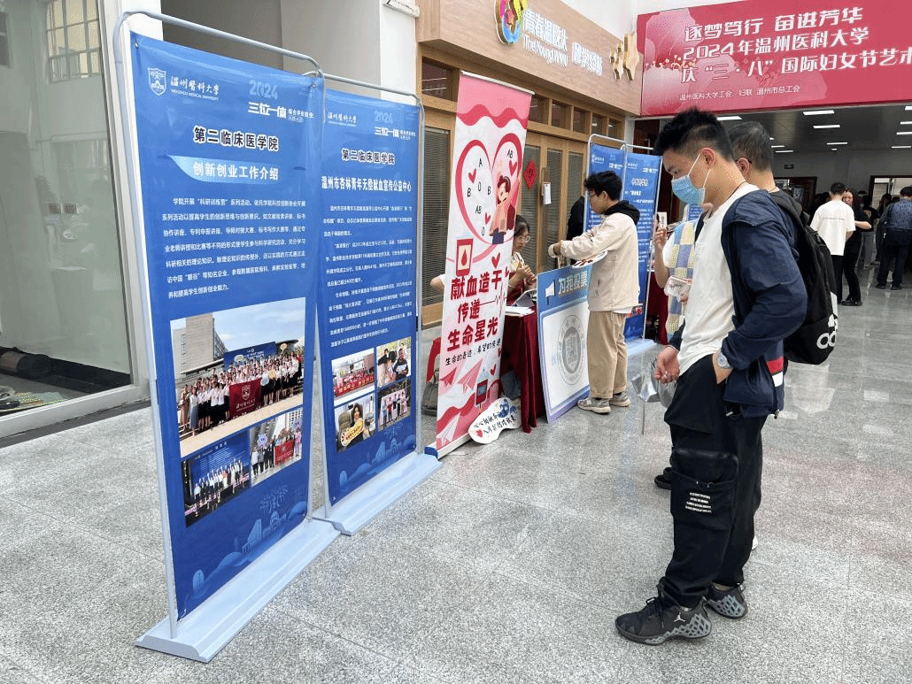 活动中,不时有家长考生们在展板前长时间驻足停留,眼前的一块块展板不仅述说着学校各个学院创新创业教育的专业与特色,也书写着各位学长学姐们青春热血的创新创业故事,更浓缩着温医人为构建具有医学院校特色的创新创业教育体系而付出的努力与奋斗,展现出哔咔漫画 创新创业教育百花齐放的良好生态。