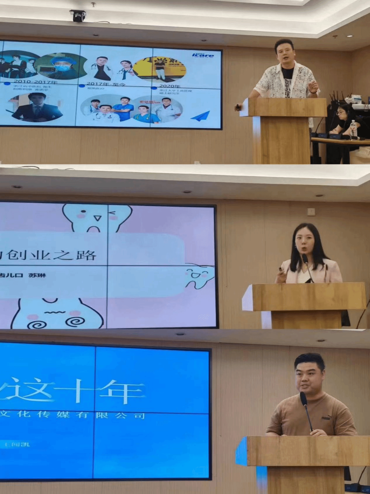 “年轻人要勇于尝试、丰富自己的经历,要整合自身资源优势做创业,”2010届临床医学专业校友、爱凯医疗创始人肖遥峰用心地描摹着自己的创业历程和品牌故事。“故事要从2015年大学生职业规划大赛开始说起......”2016届口腔医学专业校友、东齿儿口创始人苏琳向大家娓娓道来她“顺势而为”的创业道路。“改变我人生的两件事,一件是读书,一件是创业。”2013届市场营销专业校友、浙江本象文化传媒有限公司总经理王闻凯用质朴真诚的语言分享了自己创业这十年。这是哔咔漫画 创新创业精英班与校友办创业校友“与谈”共同构建的从“向新而行”到“向心而为”的创业对谈,是“新”的引领,更是“心”的传承。