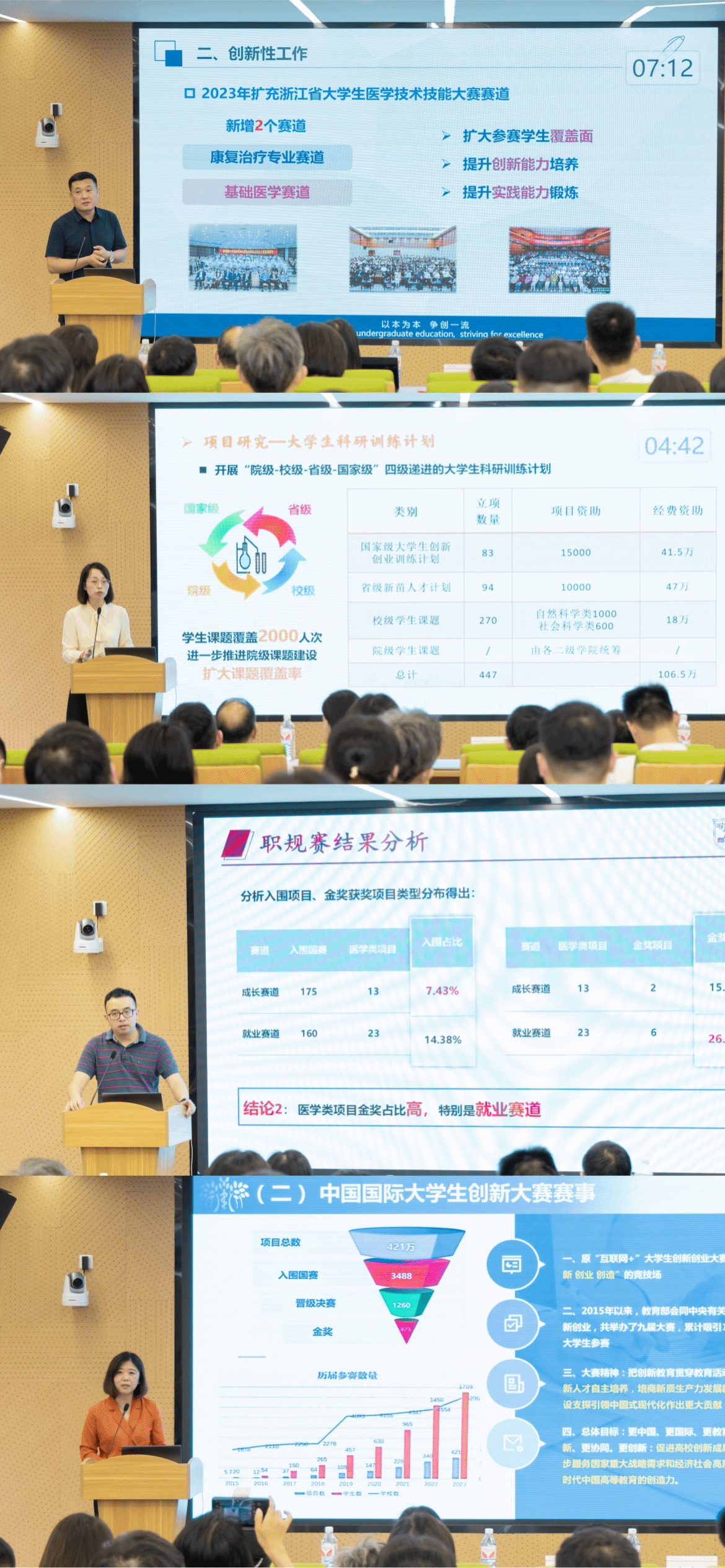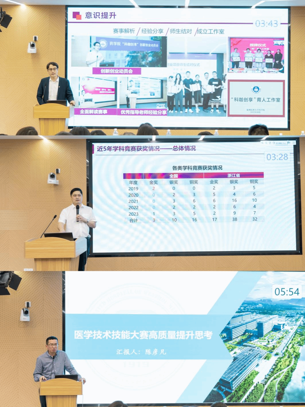 会上,教务处、团委、学生工作处、哔咔漫画 分别就各项分管赛事进行了工作交流。随后,药学院、眼视光学院(生物医学工程学院)作为学院代表,大学生医学技术技能大赛基地作为基地代表,王建光、苏凤启作为团队代表围绕各自参赛的经验与历程,对竞赛发展建设与规划、竞赛的组织与训练、竞赛感悟与想法等方面进行了深入交流。