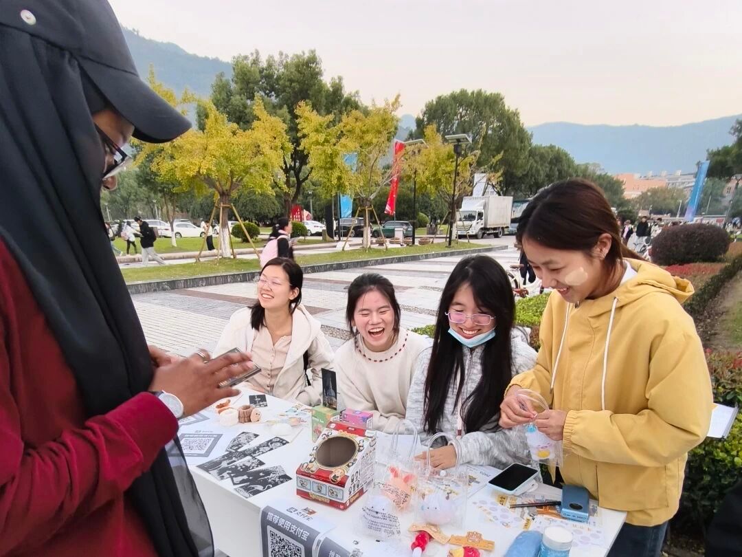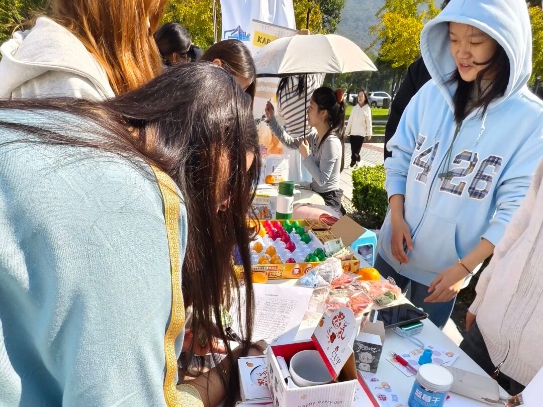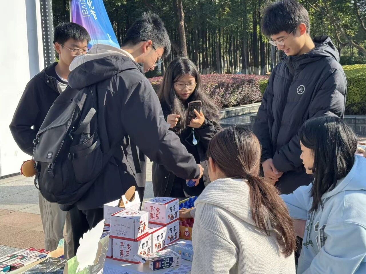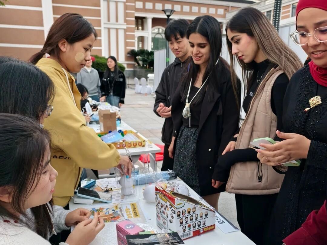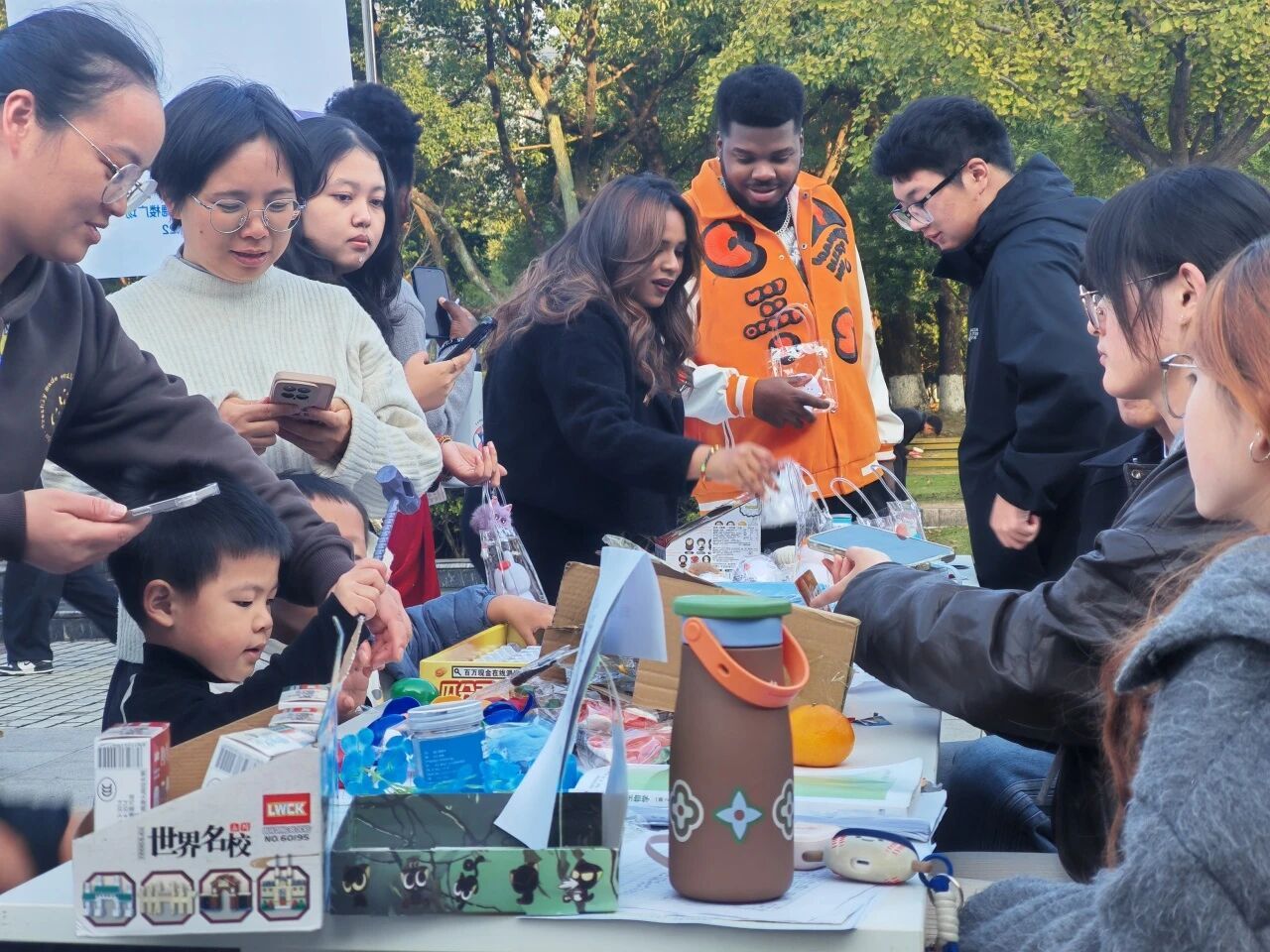本次活动更凭借多元包容的氛围吸引了众多校内留学生驻足参与,现场热闹非凡 —— 不同肤色的身影穿梭其间,同学们或低头端详商品,或主动向社团成员详细咨询产品详情,不同文化背景的参与者在交流中碰撞出精彩火花。